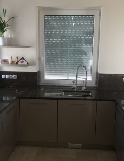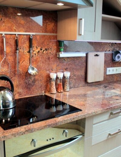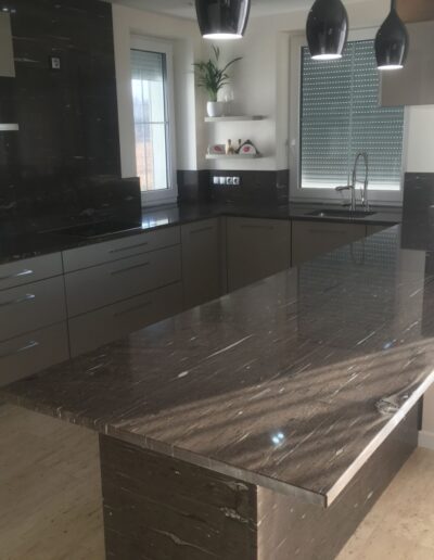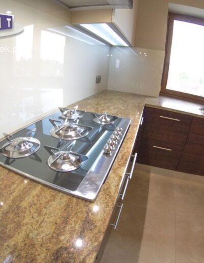 Wykonujemy blaty z naturalnych kamieni, takich jak granit, marmur i onyks, a także z wysokiej jakości kwarców. Każdy projekt realizowany jest na wymiar, z uwzględnieniem układu kuchni oraz indywidualnych oczekiwań inwestora. Kamienne blaty charakteryzują się odpornością na uszkodzenia, stabilnością oraz ponadczasowym wyglądem.