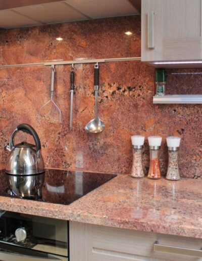 Blaty kamienne znajdują zastosowanie nie tylko w kuchniach, ale również w łazienkach, strefach recepcyjnych, przestrzeniach wystawowych oraz obiektach komercyjnych.Zapewniamy kompleksową realizację – od doradztwa w wyborze materiału, przez precyzyjną obróbkę, aż po transport i montaż.