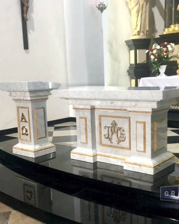 Wykonujemy elementy kamienne przeznaczone do kościołów oraz innych obiektów sakralnych, takie jak ołtarze, ambony, chrzcielnice, posadzki, okładziny ścienne, schody, tablice pamiątkowe oraz pomniki. Każdy projekt realizowany jest indywidualnie, z uwzględnieniem specyfiki miejsca oraz oczekiwań inwestora.